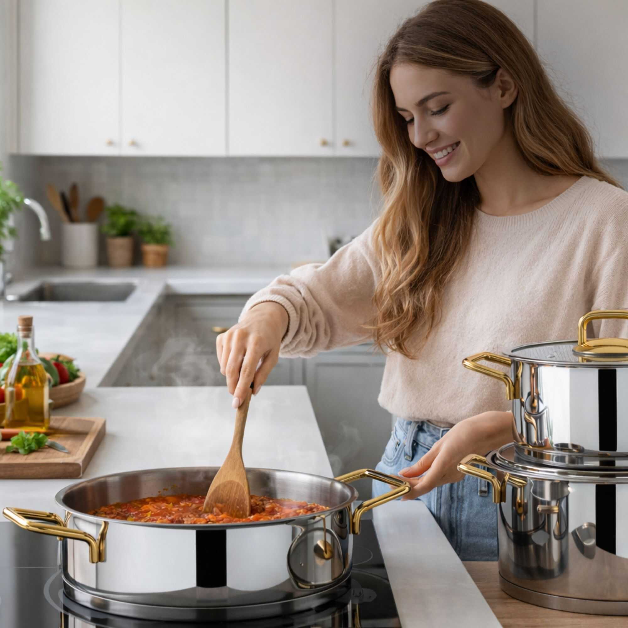 304 Kalite 8 Parça Çelik Tencere Seti