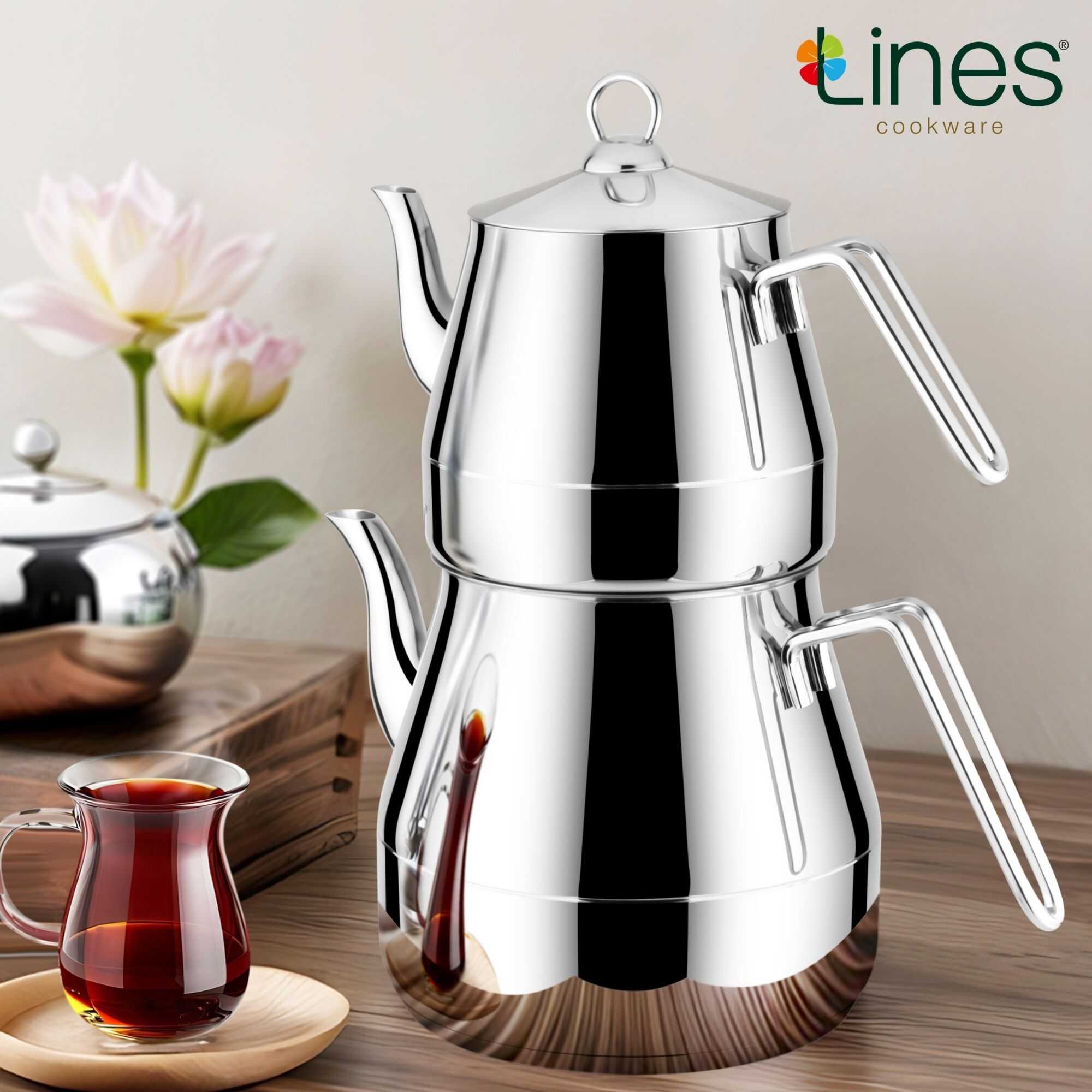 Sofranızda fark yaratacak Lines Piramit Mega Boy Altın Kulplu Paslanmaz Çaydanlık ile her dem sıcak çayın keyfini çıkarın!